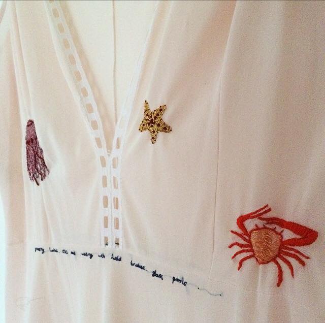 HAND EMBROIDERED VINTAGE DRESS, WITH SEA CREATURES AND MY OWN POETRY
