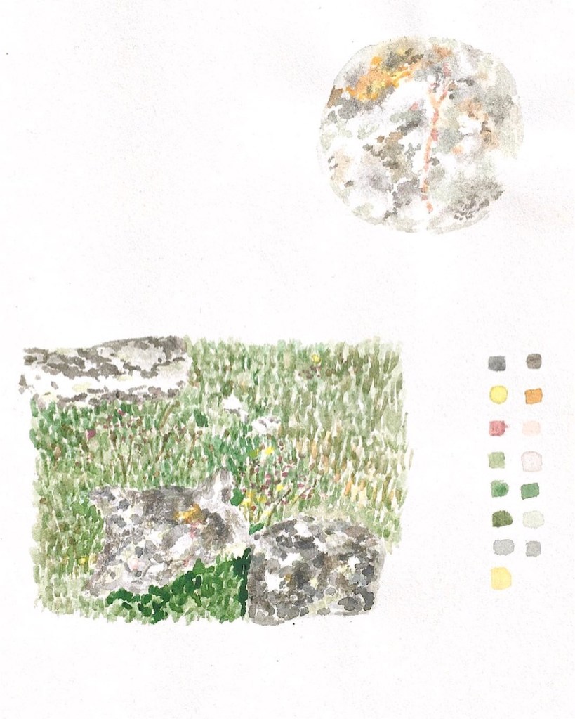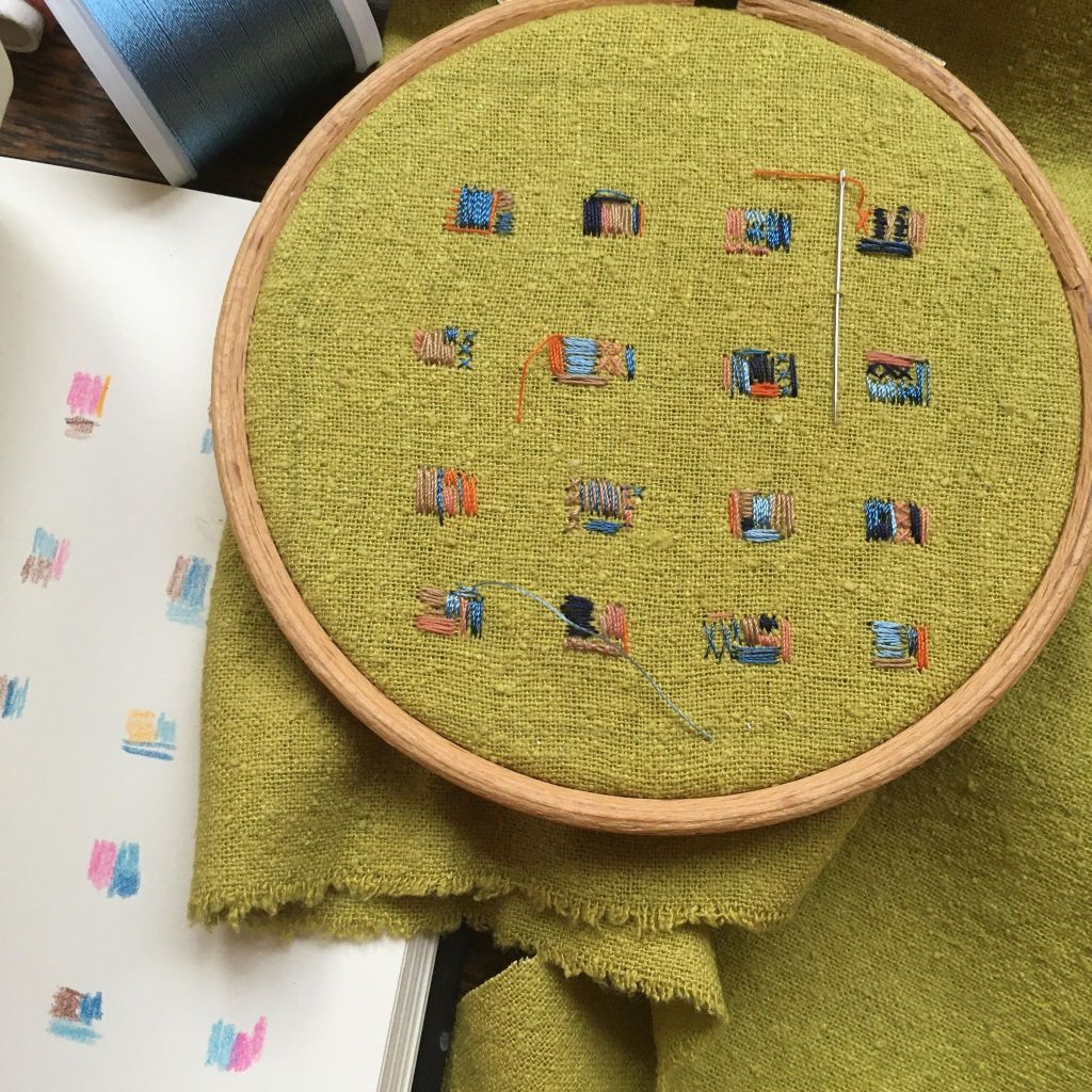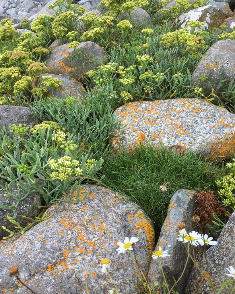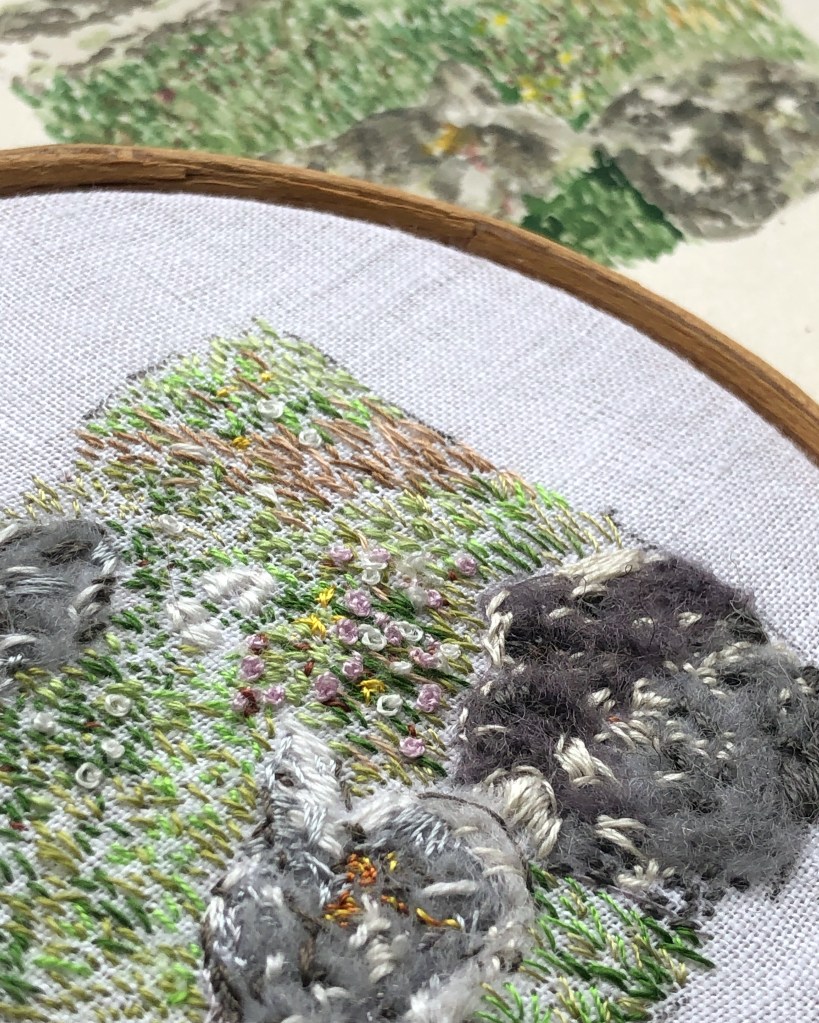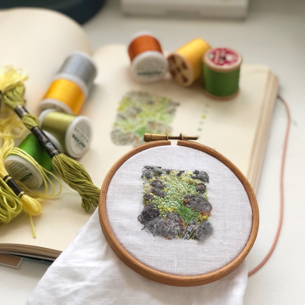 INSPIRED BY A WALK ALONG THE CORNISH COAST. PHOTOGRAPHING, PAINTING AND EVENTUALLY STITCHING THE COLOURFUL ROCKS AND FLORA OF CORNWALL.