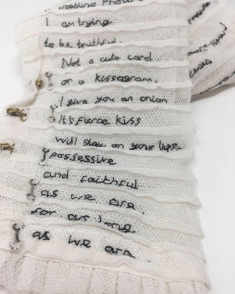‘VALENTINE’ BY CAROL ANN DUFFY – HAND EMBROIDERED POEM ON VINTAGE SLEEVE