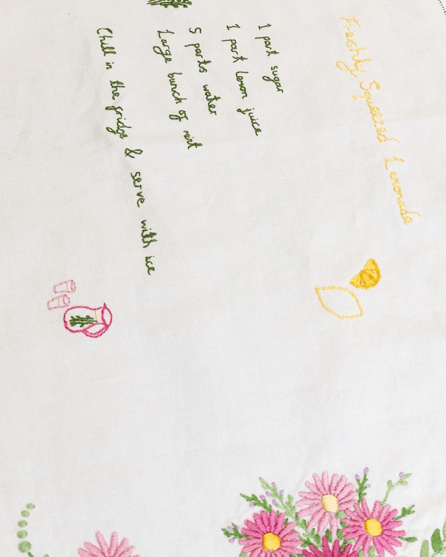 FRESHLY SQUEEZED LEMONADE – HAND EMBROIDERED RECIPIE
